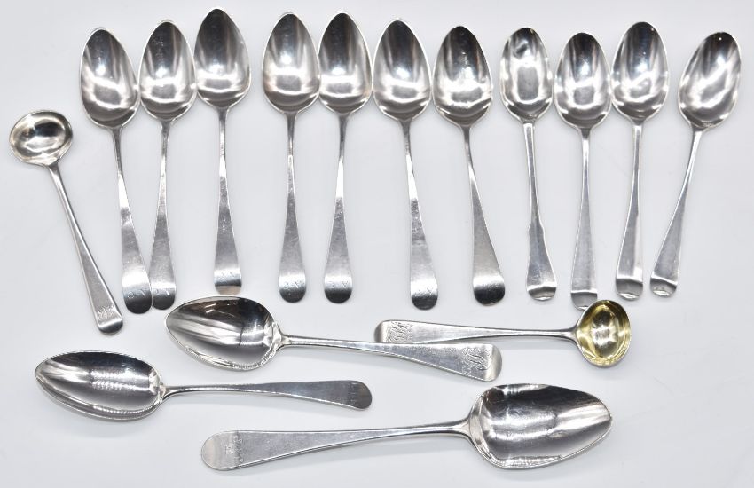 Georgian hallmarked silver tea and other spoons including a set of six London 1807, maker Peter & William Bateman, bottom marked examples, condiment spoons etc, weight 200g