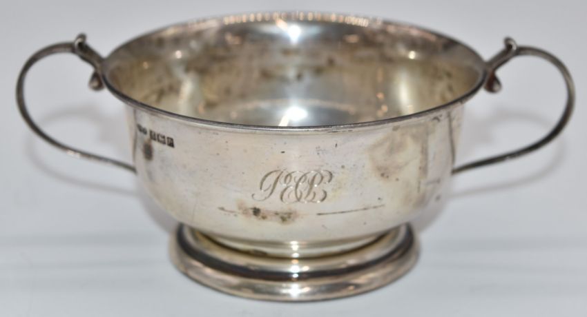 Modern twin handled silver porringer or twin handled bowl, Birmingham 1964, maker Deakin & Francis Ltd, width 16cm, weight 110g