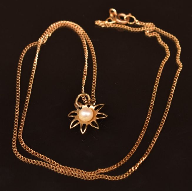 A 9ct gold pearl necklace, 2g