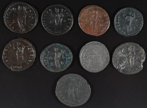 Roman Imperial coinage The Tetrachy AD285-307 Galeria Valeria bronze coins, diameter approximately 26-28mm, 8 coins together with a Severus II example
