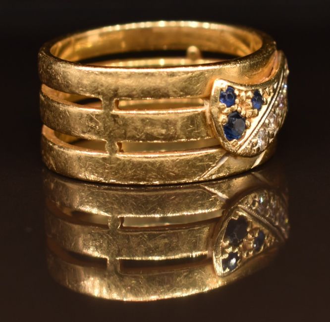 An 18ct gold ring set with sapphires and diamonds,7.8g, size J