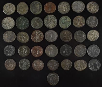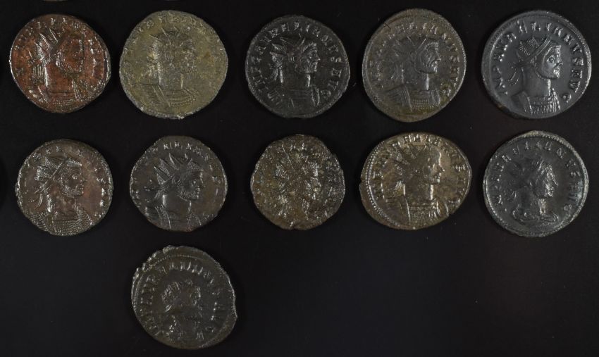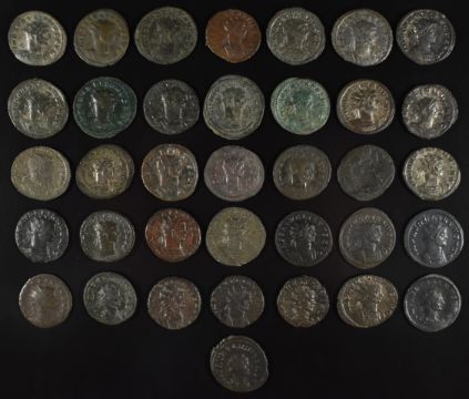 Roman Imperial coinage The Illyrian Emperors AD270-285 Aurelian thirty six bronze coins and some silvered Antoninianus coins, diameter 20-22mm
