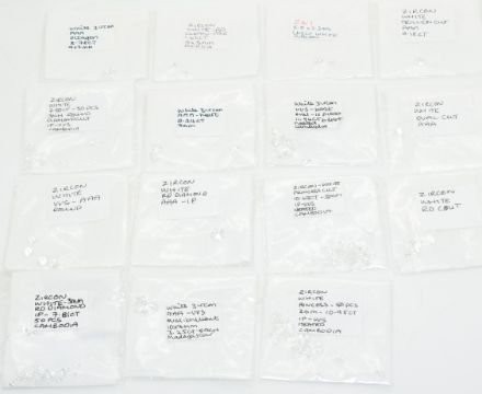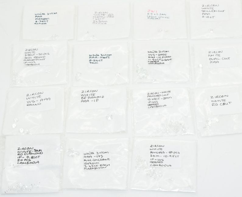 Over 200 loose white zircons including three heart cut, 3.7ct octangonal cut, 2.1ct trillion cut, etc