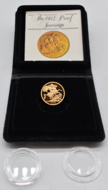 Queen Elizabeth II 1982 proof gold full sovereign, in case