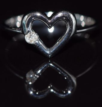 A 9k white gold ring set with a diamond in a heart setting,1.6g, size M