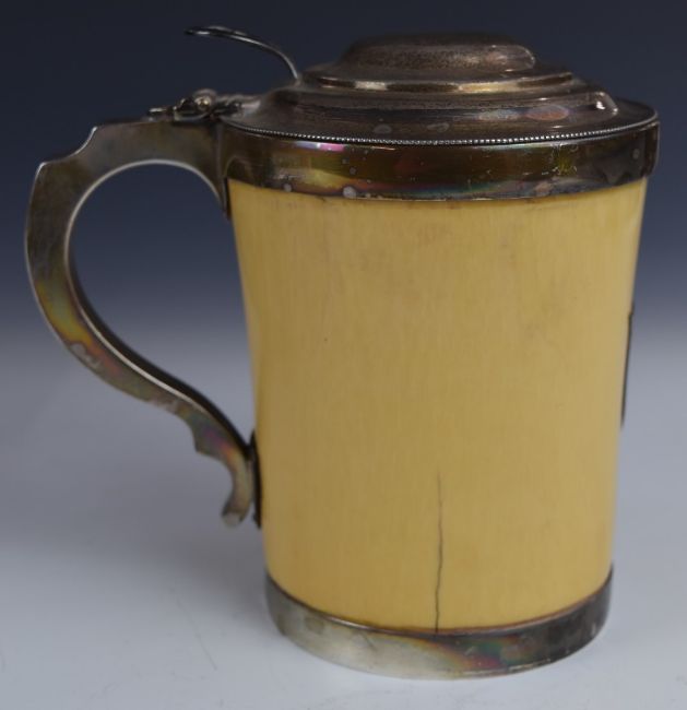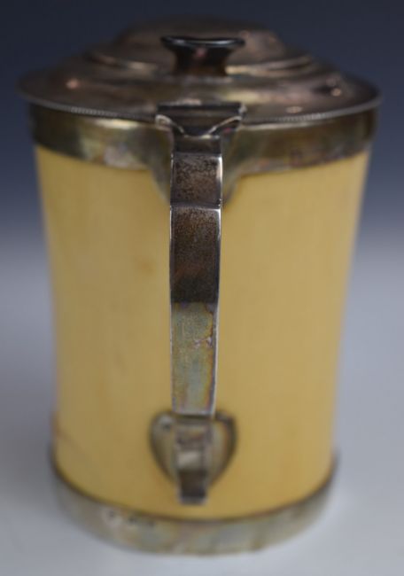 Victorian hallmarked silver mounted ivory lidded tankard, with cut glass bottom, London 1896, maker's mark HE GF, height 14cm