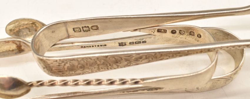 Twelve various sets of hallmarked silver sugar tongs including apostle examples, weight 244g