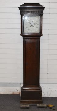 Cha Raymond Lydeway oak cased longcase clock, with enamel dial, marked Wilson to the movement, H190cm