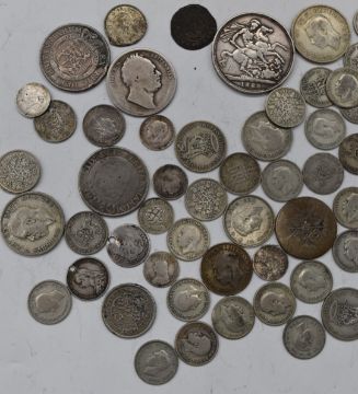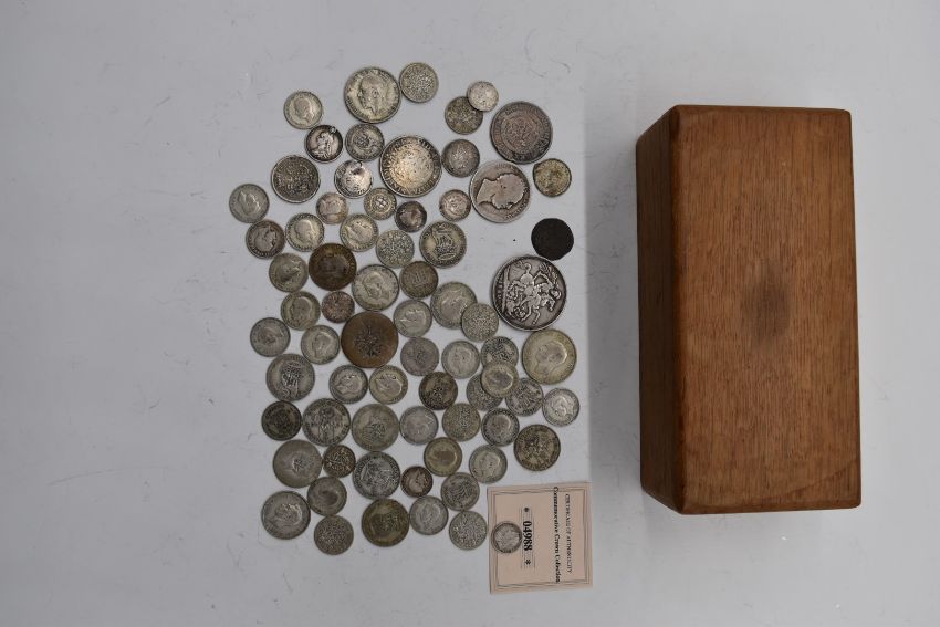 Queen Victoria 1889 Jubilee crown together with William IV and George III florins and a quantity of mixed UK pre 1947 silver, approximately 296g in all
