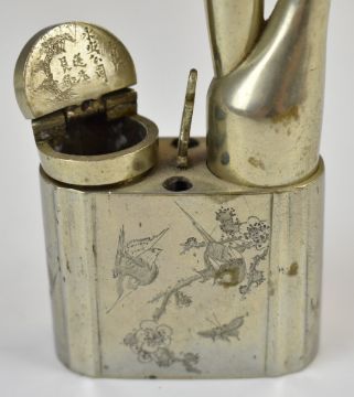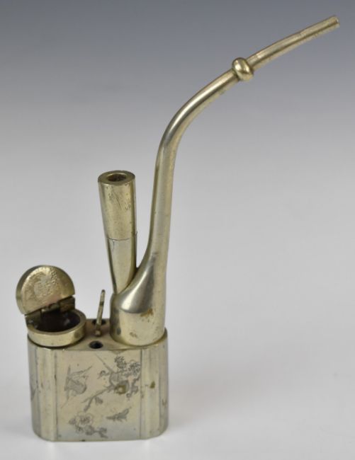 Randwick (Stroud, Gloucestershire) possibly Scouting interest hallmarked silver presentation key dated 1933, length 8.5cm, weight 31g, in original fitted case, Eastern opium pipe length 17cm and a German pipe
