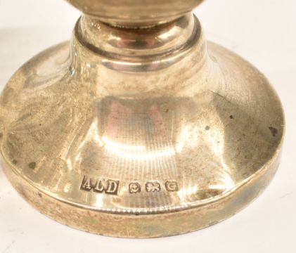 George V hallmarked silver sugar caster, Birmingham 1931, maker A L Davenport Ltd, height 13.5cm, weight 83g, together with a hallmarked silver lidded cut glass example, Sheffield 1935, maker William Hutton & Sons Ltd, height 14cm, weight of cap 23g