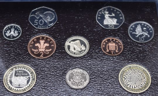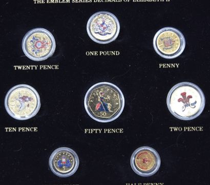 London Mint Office deluxe cased gilt and enamelled 'Farewell' coinage set with certificate, together with a 2004 Royal Mint Executive UK set