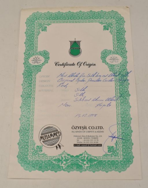 Turkish silk rug with Paradise Garden pattern, with certificate, 205 x 138cm