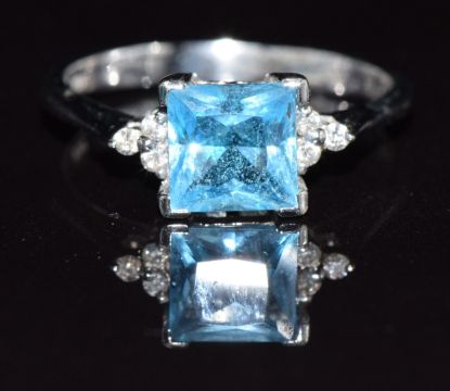An 18ct white gold ring set with London blue topaz and diamonds, 3.9g, size R