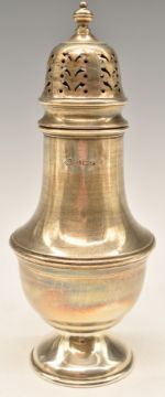 George VI hallmarked silver sugar caster of baluster form, Birmingham 1939, maker Adie Brothers Ltd, height 18.5cm, weight 166g all in