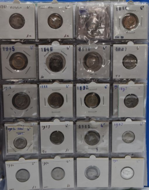 A collection of English sixpences, William III through to Elizabeth II, silver content, contained in an album