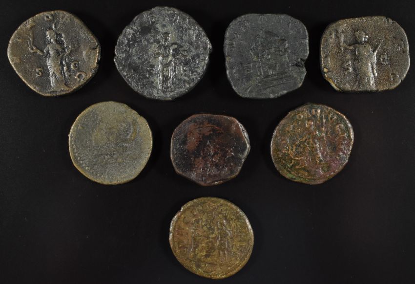 Roman Imperial coinage The Illyrian Emperors AD270-285 bronze coins  Severina AE as, together with an Aurelian example, Military Anarchy AD235-270 Postumus Dupondius, Volusian Sestertius and Trebonianus Gallus examples x8, diameter 23-30mm