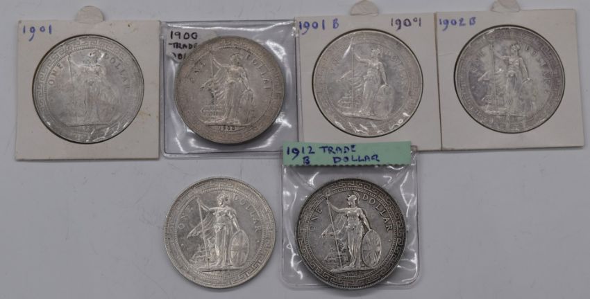 British Colonies trade Dollars, 1900, 1901, 1901B, 1902B, 1903 and 1912B