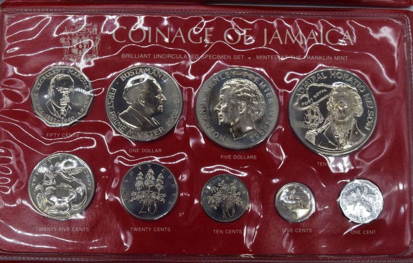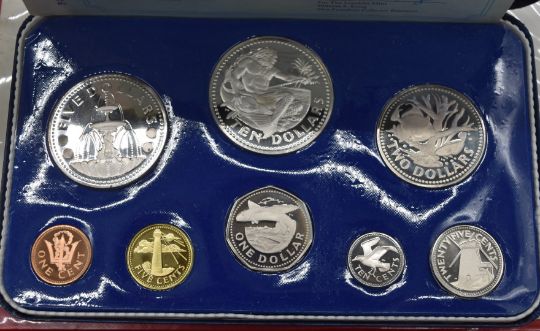 Five proof / specimen coin sets to include 1976 low mintage Jamaica, British Virgin Islands, Barbados, South Africa and USA, most with certificates