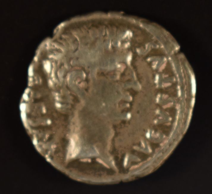 Roman Imperial coinage Julio Claudian Dynasty 27BC-AD69 Agrippa silver Denarius M AGRIPPA PLATORIMUS III V I R bare head of Agrippa right, rev head right CAESAR AUGUSTUS, diameter 18mm, 3.4g