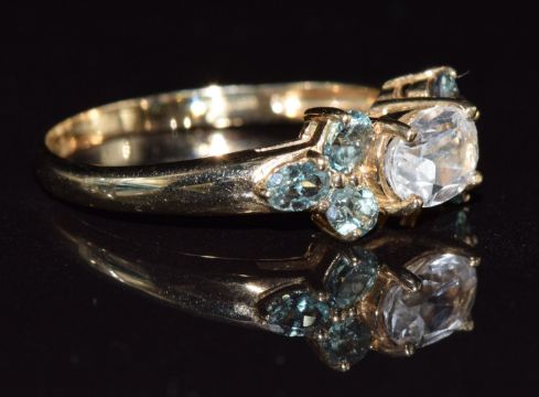 A 9k gold ring set with white topaz and alexandrite, 2.6g, size P