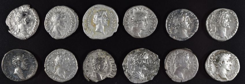 Roman Imperial coinage The Antonines AD138-193 Antoninus Pius twelve silver Denarius, various reverses, diameter 17-18mm