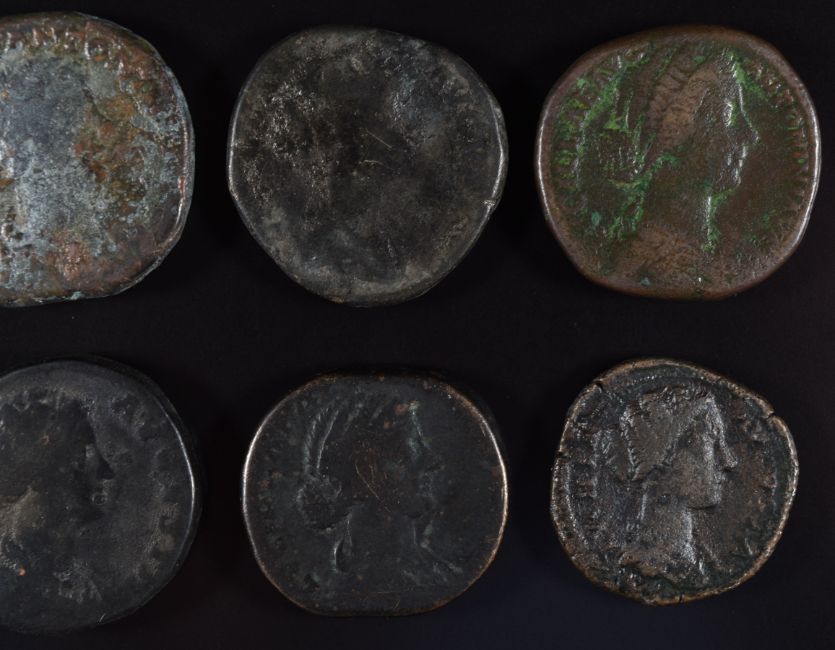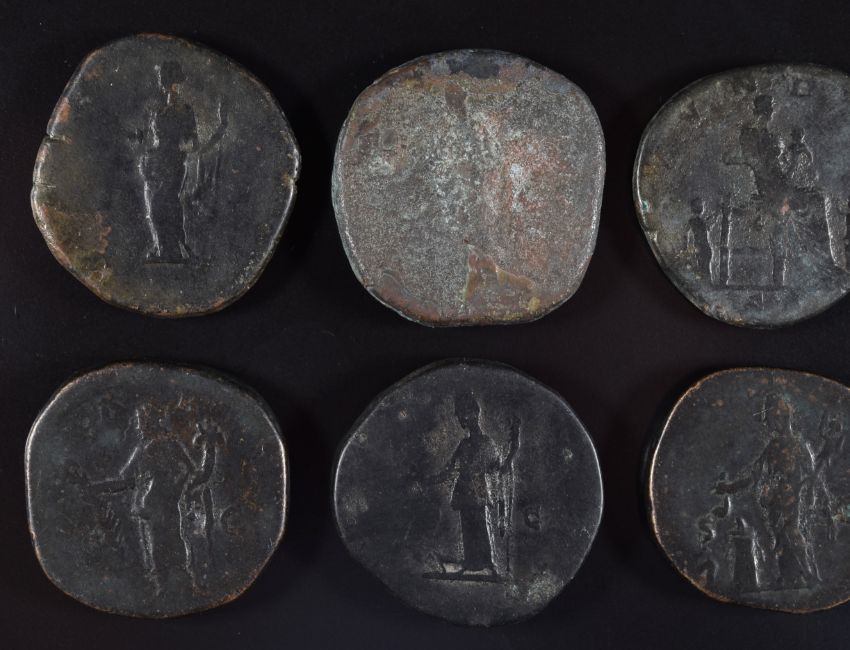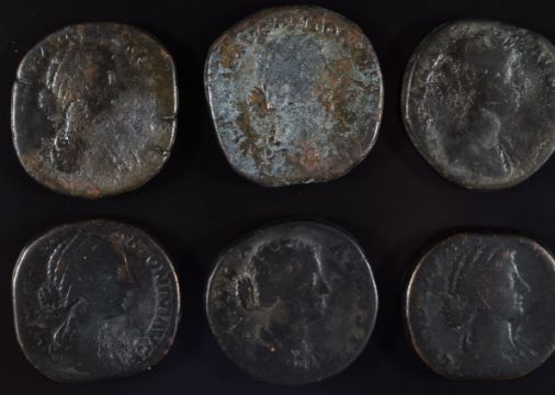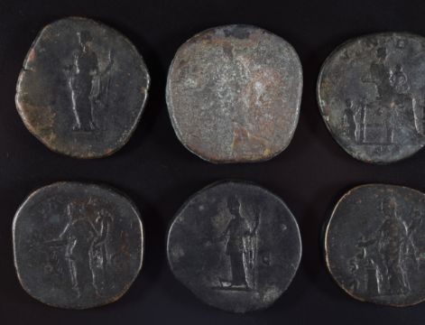 Roman Imperial coinage The Antonines AD138-193 Lucilla eight various bronze coins comprising seven Sestertius and a Dupondius example, wife of Lucius Verus, diameter 28-30mm