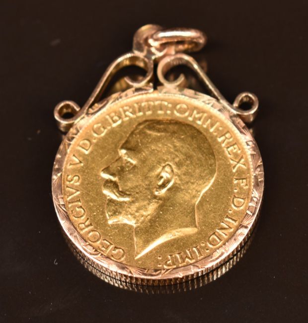 1912 gold full sovereign in 9ct gold pendant mount, 9.6g
