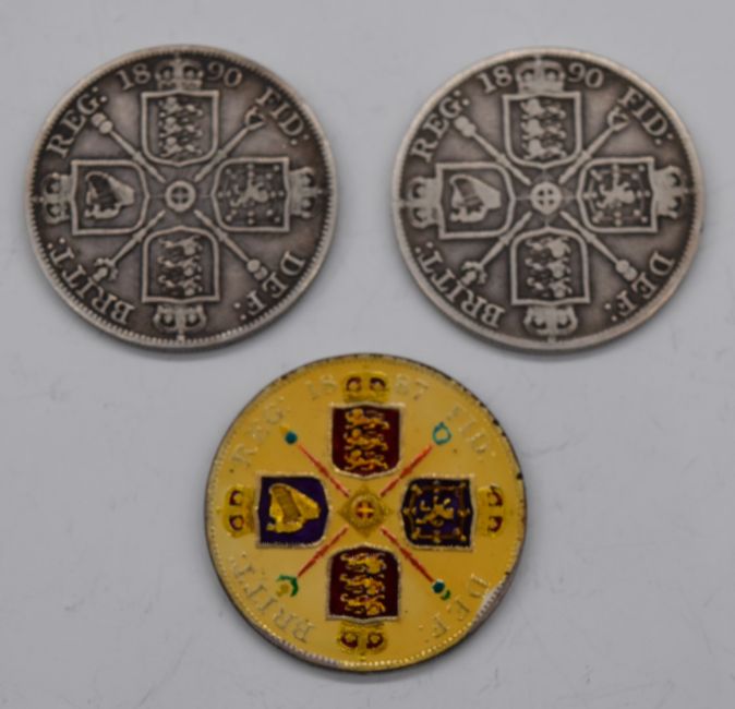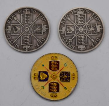 Two double florins and embellished example