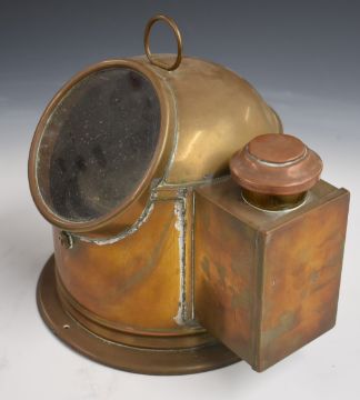 RAF P10 WW2 or similar aircraft compass, as fitted to Lancaster bombers together with a brass ship's binnacle compass with oil lamp to side, height 25cm
