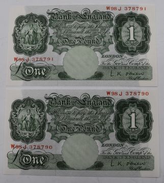A consecutive pair of 1950s O'Brien £1 banknotes
