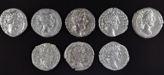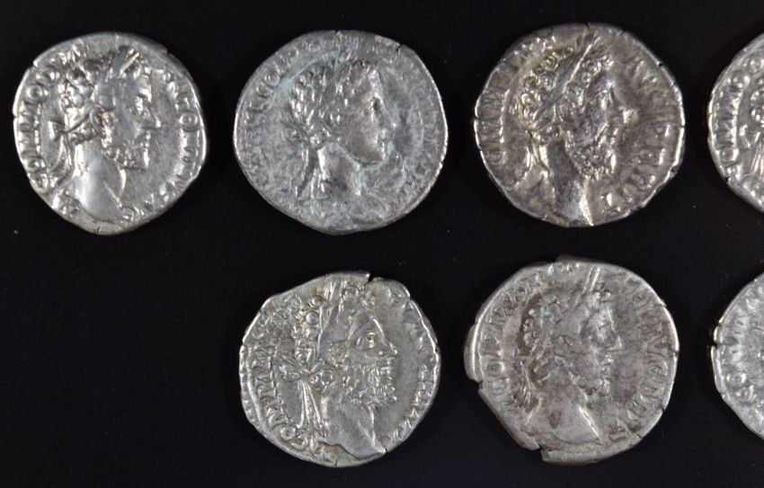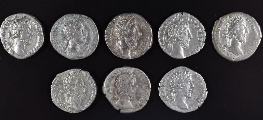 Roman Imperial coinage The Antonines AD138-193 Commodus eight silver Denarius, various reverses, diameter 17-18mm