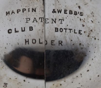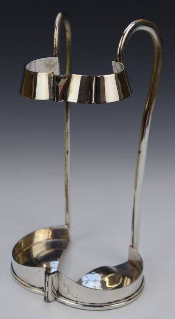 Silver plated ware including Mappin and Webb patent club bottle holder, together with a hallmarked silver candlestick