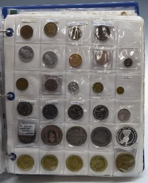 A large collection of various tokens, medallion coins etc, 18thC onwards, includes Liverpool, Bath, Edinburgh, Petersfield, Canada, Irish, etc, small silver content, contained in an album