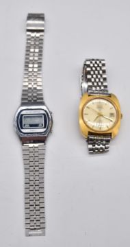 Five various wristwatches comprising Smiths Astral automatic with date aperture gold hands and hour markers, champagne dial and gold plated case, and four Casio, Braddon and Scanomat digital examples together with a spare stainless steel bracelet.