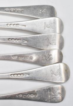 Six Georgian and William IV hallmarked silver Hanoverian or Old English pattern table forks, three London 1832, maker William Chawner II, the other three earlier, various dates and makers, length of longest 20.5cm, weight 426g