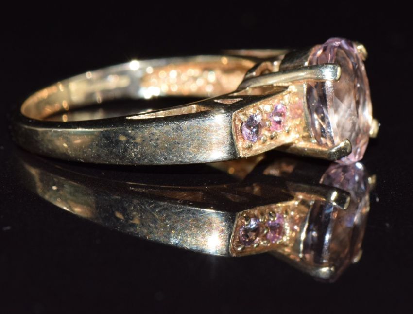 A 9k gold ring set with kunzite and pink sapphires, 3.8g, size M