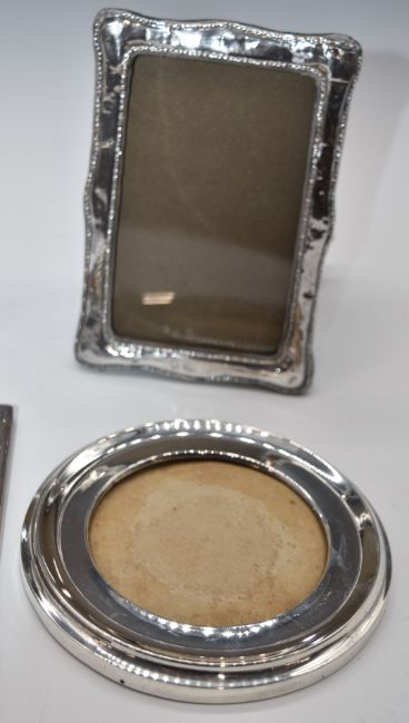 Four hallmarked silver photograph frames comprising two to suit 6 x 4 inch photo, a circular example and an oval example