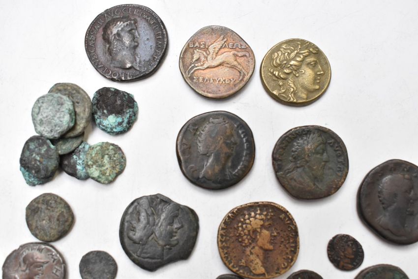 An interesting collection of Roman and other ancient coinage to include Diva Faustina, Antonius and a possible Paduan copy