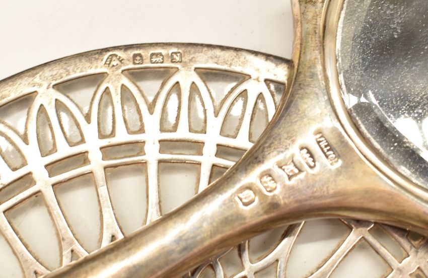 Two hallmarked silver mounted dressing table sets, both comprising hand mirror and two brushes, one having comb, together with a hallmarked silver mounted coaster and a fitted dressing table set box