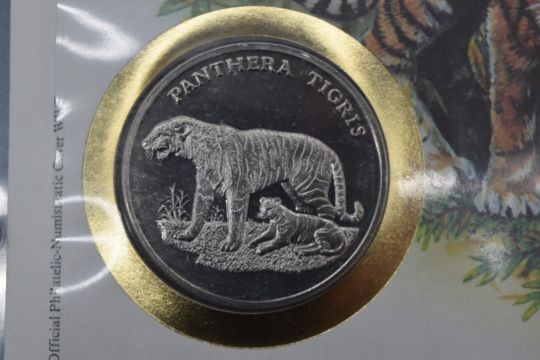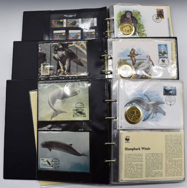 World Wildlife Fund coin and stamp covers collection, in three albums