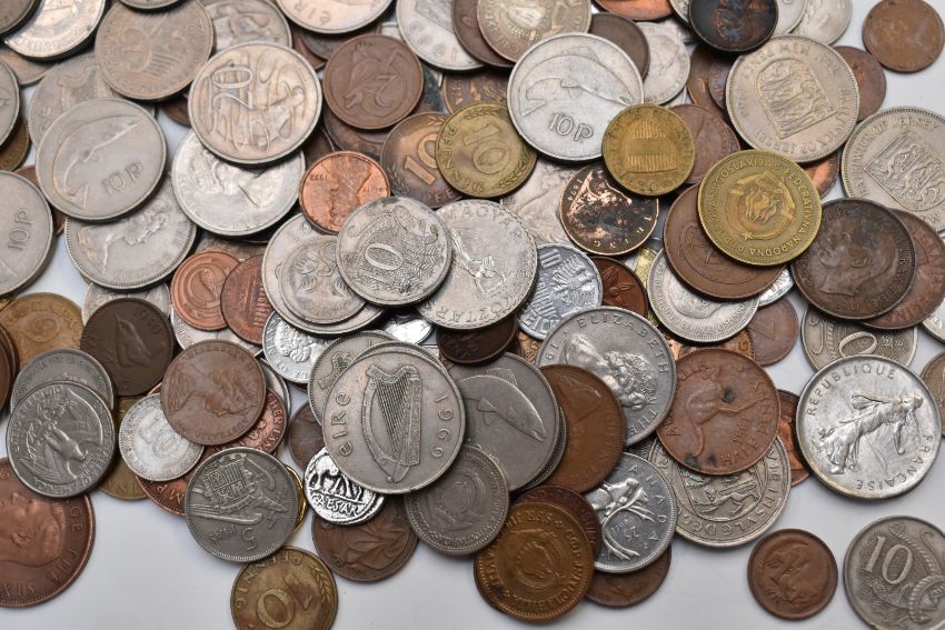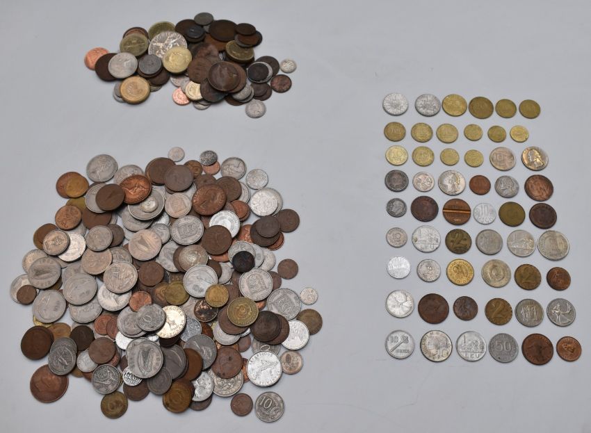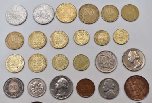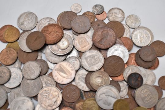A collection of UK coinage, overseas holiday change etc