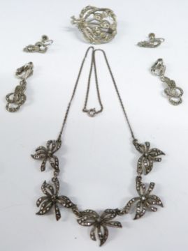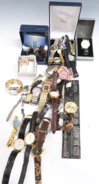 A collection of costume jewellery including Stuhrling and Oris watches, bangles, beads, mother of pearl necklace, Ralph Lauren bag, etc