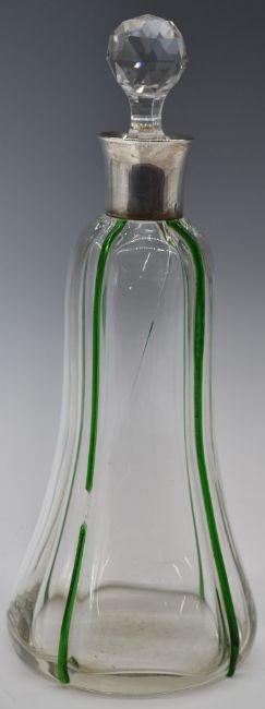 Edward VII hallmarked silver mounted clear and green glass decanter, Birmingham 1903, maker's mark indistinct, height 31cm