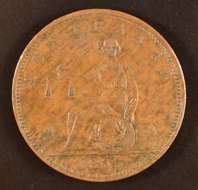 Australia 1855 penny token, A Toogood, Merchant, Sydney