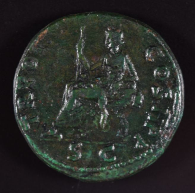 Roman Imperial coinage Adoptive Emperors AD96-138 Trajan bronze Dupondius IMP CAES NERVA TRAJAN AVE GERM PM, radiate crown head right, rev TR POT COS II PP SC, Abundance seated left on cornucopiae seat holding sceptre, diameter 27mm, 14g