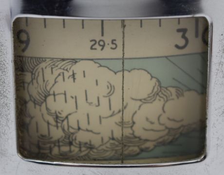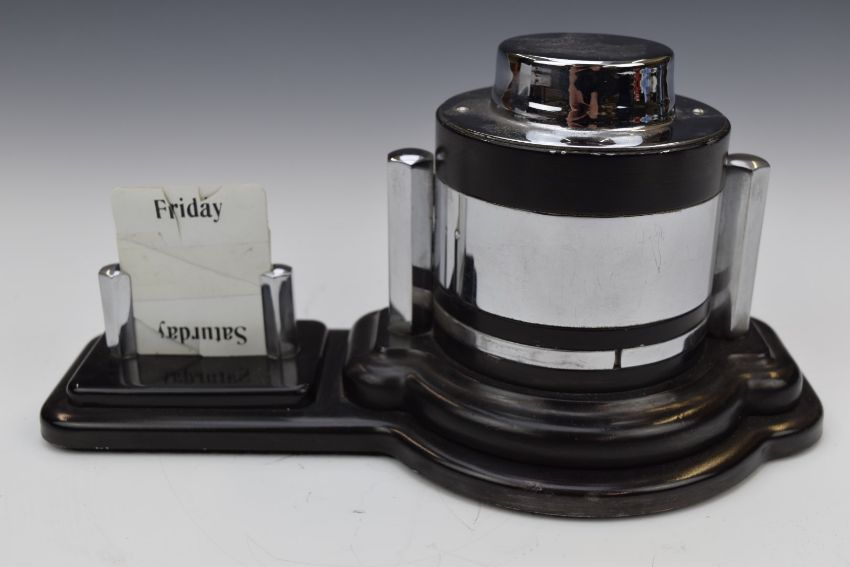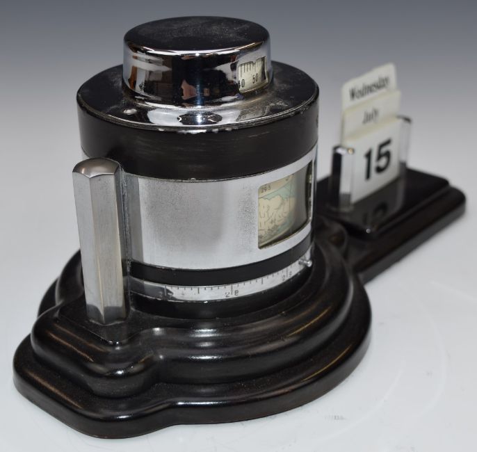 Art Deco barometer, thermometer and calendar desk stand, L26cm