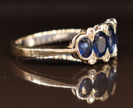 An 18ct white gold ring set with five graduated sapphires and diamonds, 3.3g, size M