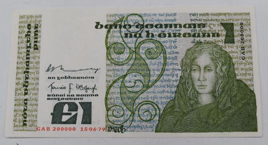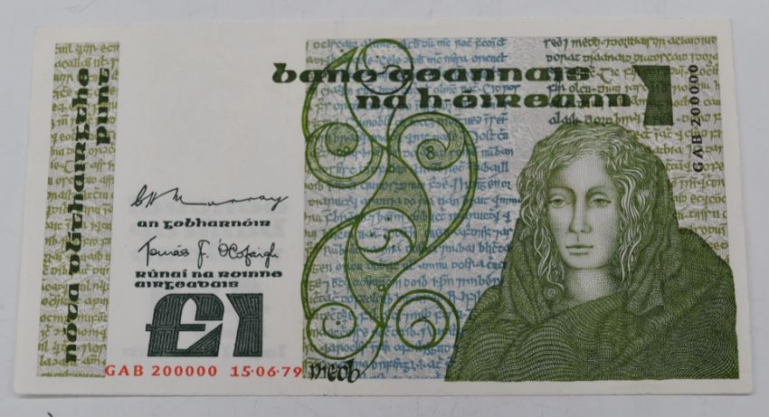 Central Bank of Ireland uncirculated £1 banknote GAB 200000
