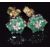 A pair of 9ct gold earrings set with a diamond and emeralds in a cluster